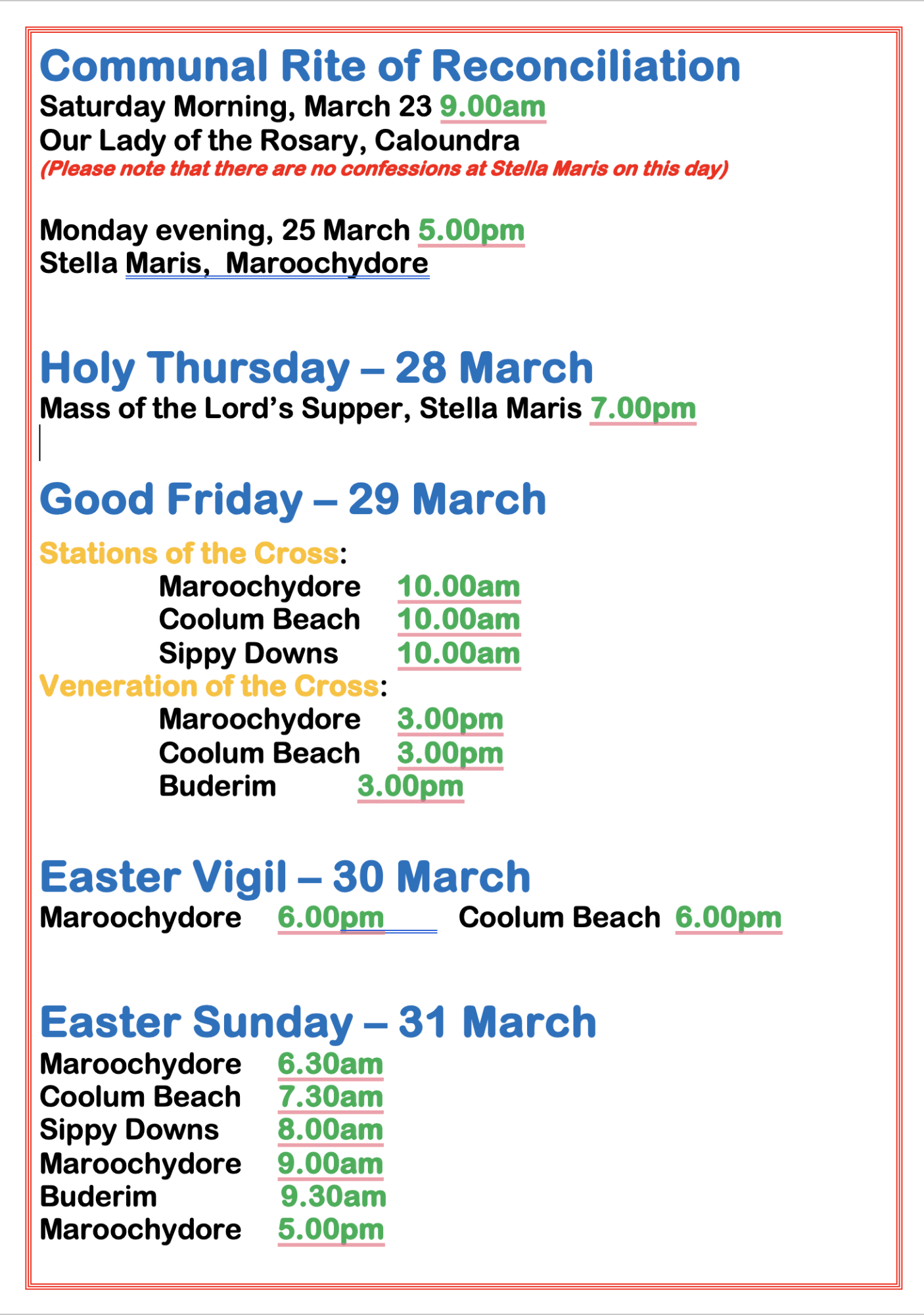 Easter Mass Times1