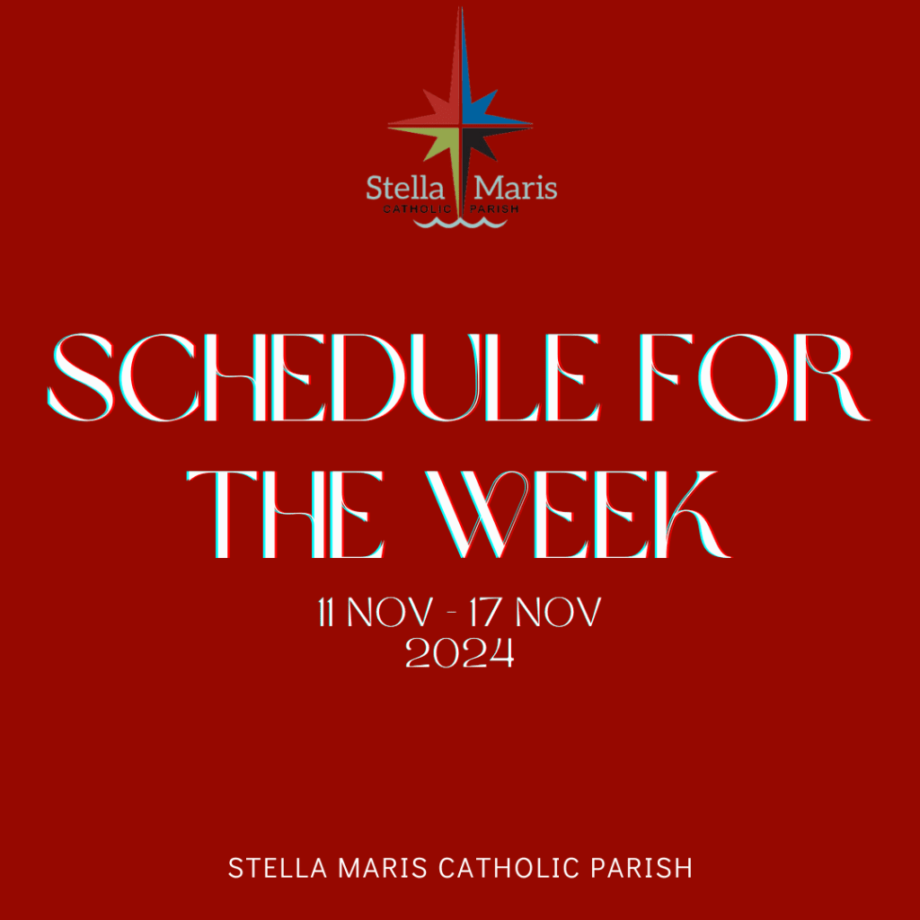 Schedule for the Week We acknowledge the traditional owners of the land on which our communities celebrate liturgies and live out our faith. We pay respects to leaders past, present and emerging. May their example of stewardship be reflected in our lives. Monday, 18 November Adoration of the Blessed Sacrament 4:30pm Benediction (5.15pm, Stella Maris…